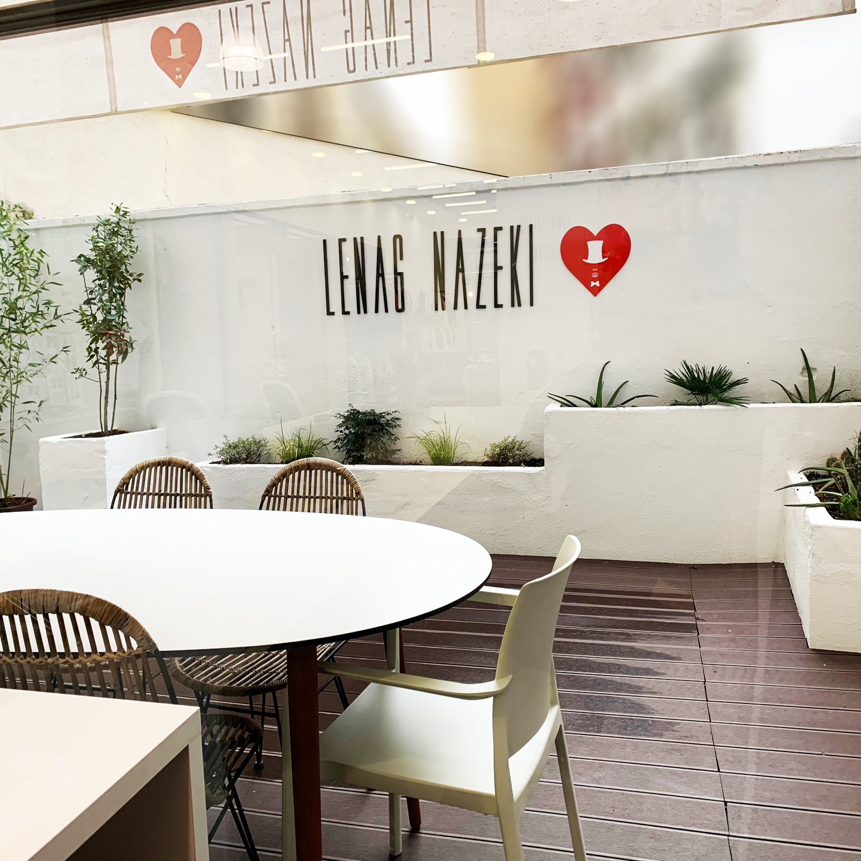 Fachada resuelta con letras corpóreas en PVC blanco, logo en Dibond recortado, vinilo impreso, lámina solar espejada en cristalera de fachada y vinilo al ácido en cristaleras interiores.